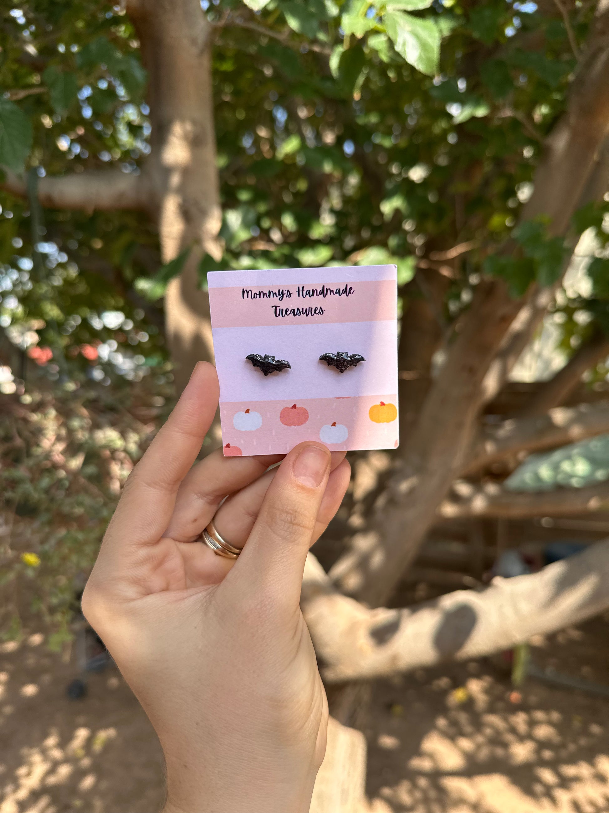 Take your spooky style to new heights with these Bat Studs! Each pair is handmade from polymer clay and finished with a glossy black sheen that catches the light just right. Perfect for Halloween season — or for anyone who loves a touch of gothic charm year-round. Lightweight, durable, and just the right mix of cute and creepy!