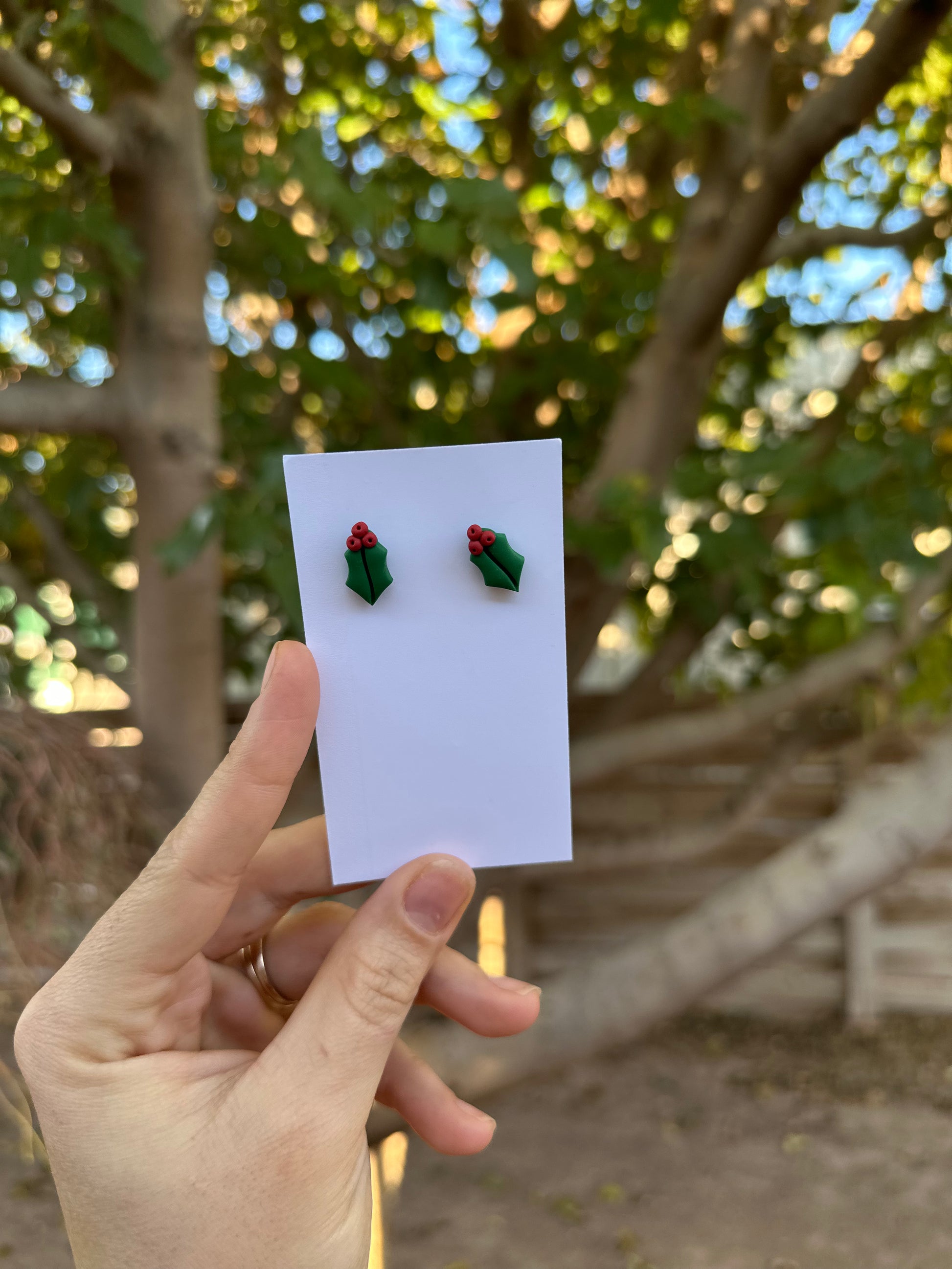 A tiny touch of Christmas magic! Our mistletoe Studs are hand-sculpted with rich green leaves and bright red berries for the cutest festive pop. These are the perfect everyday holiday earrings — subtle, lightweight, and easy to pair with any outfit all season long.