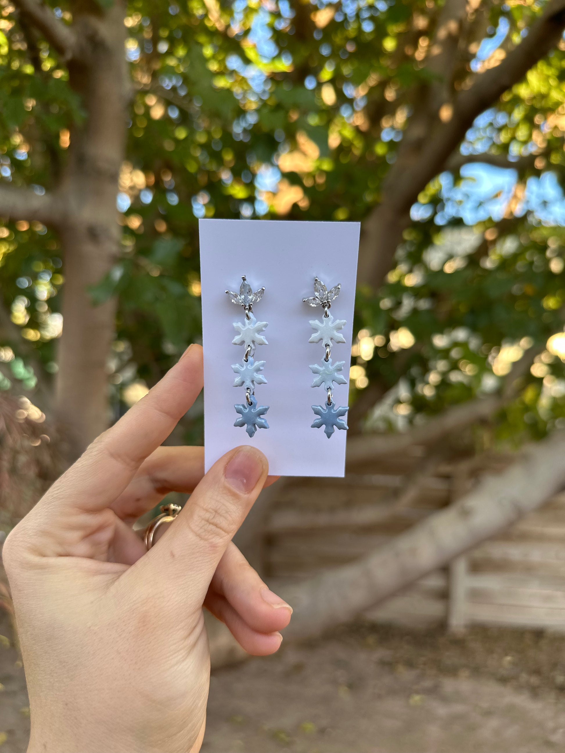 Make winter sparkle with our Winter Frost Drops — a stunning combination of shimmering crystal-style studs and hand-sculpted polymer clay snowflakes. These earrings catch the light beautifully and bring the perfect icy winter vibe to your holiday photos, parties, and everyday winter outfits.